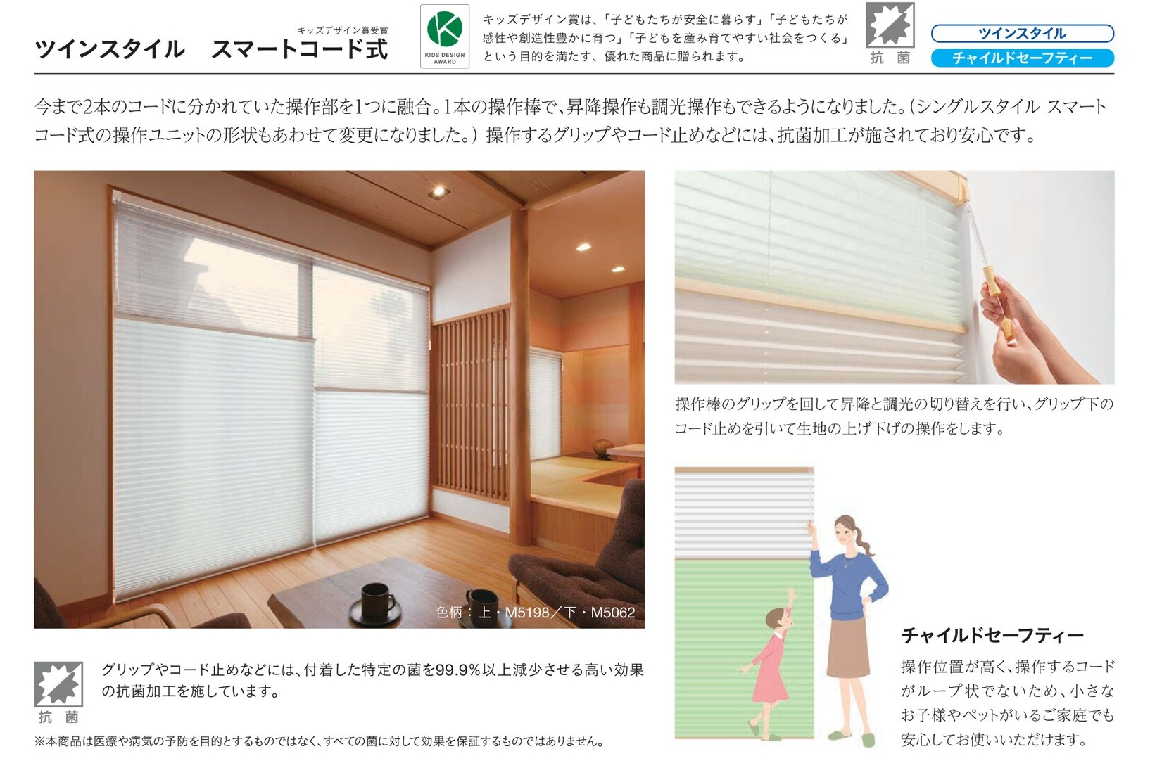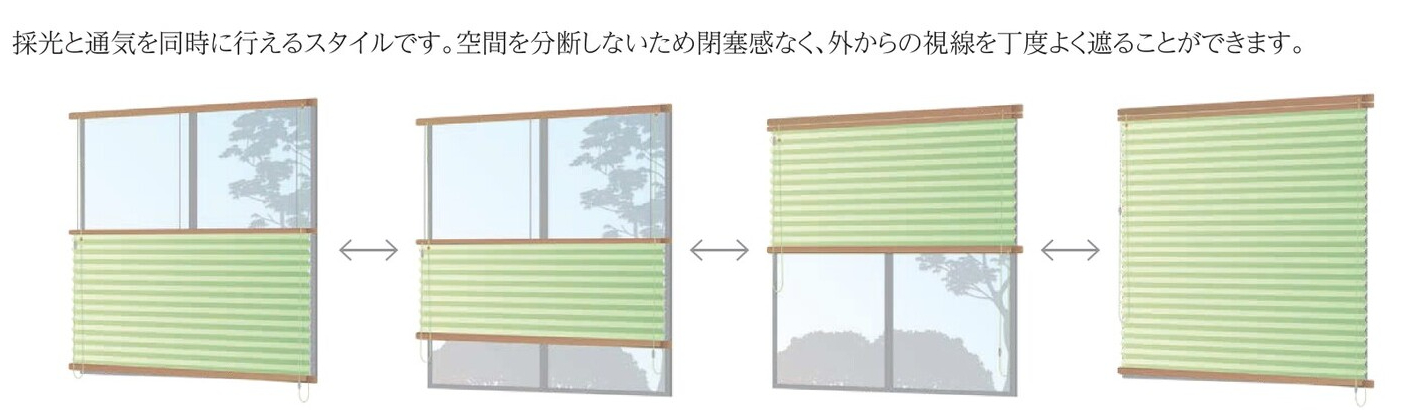 シースルーの生地と不透明生地を上下に配置し、1台2役の機能で