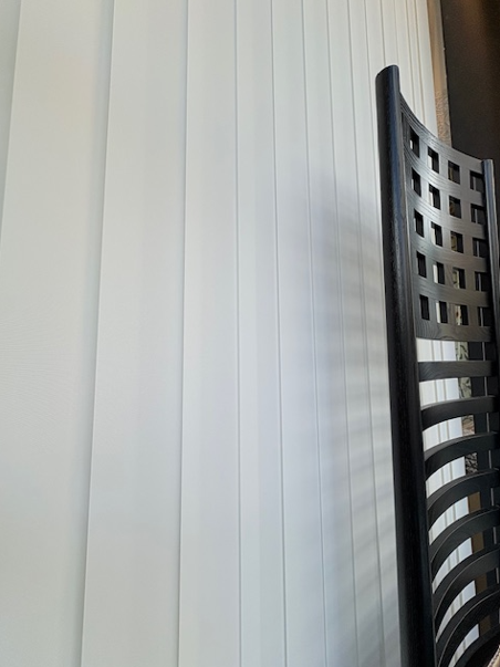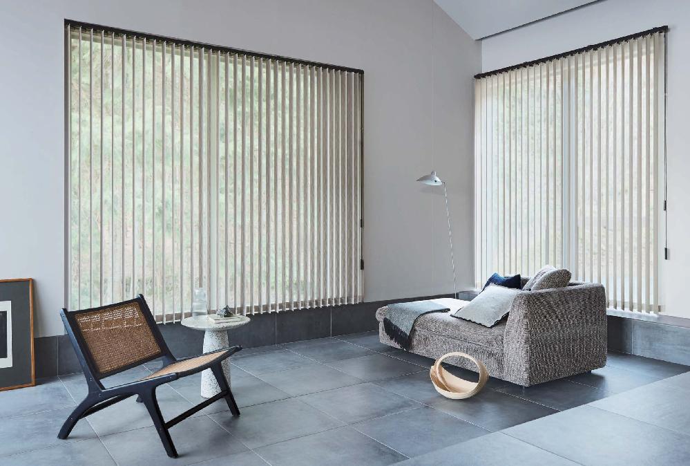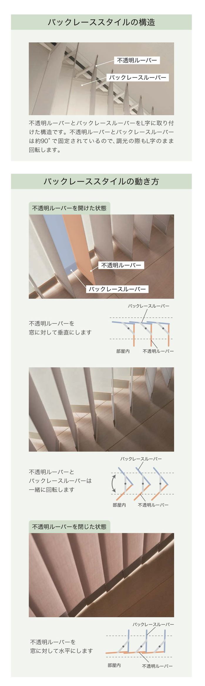 不透明ルーバーとレースルーバーをL字に取付けた、遮蔽と採光をコントロールできるスタイル。
