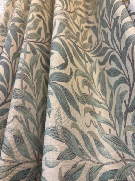 柳の枝の流れと細長い柳の葉で全面埋め尽くされた上品なオーダーカーテン。おススメです。