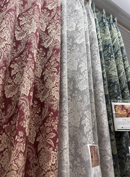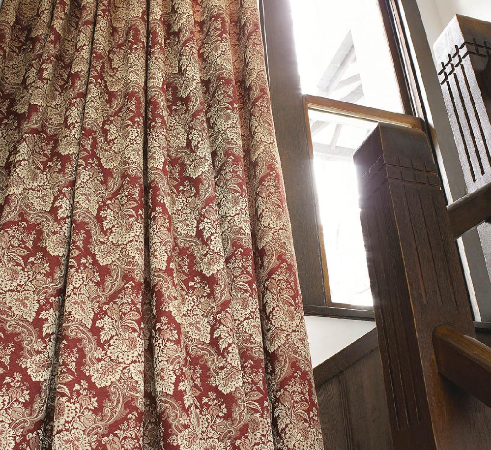 オーナメント更紗柄を立体的のある繊細な織物で表現したオーダーカーテン。