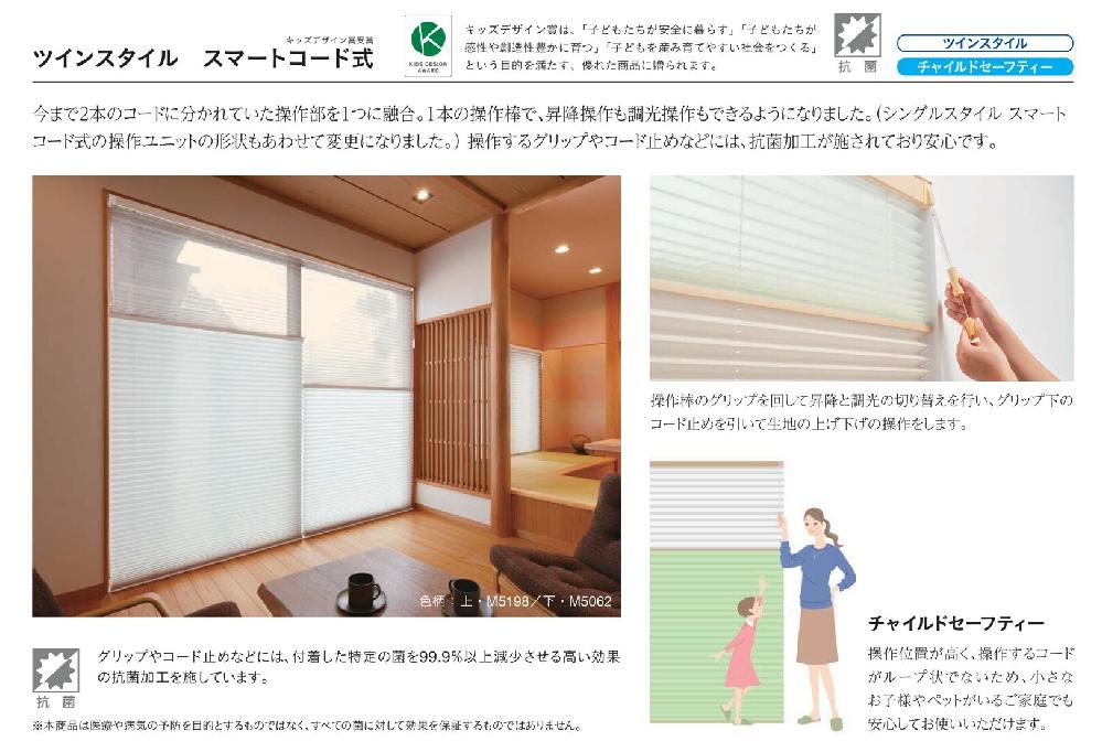 ロールスクリーンや、プリーツスクリーン、ウッドブラインドなどに、操作方法として「スマートコード」(各社で呼び方は異なるかもしれません。)が発売されています。