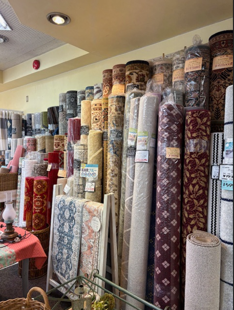 店内にはアクセントラグなどの部分敷きのカーペットを展示しています。