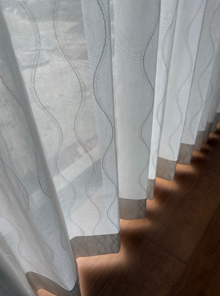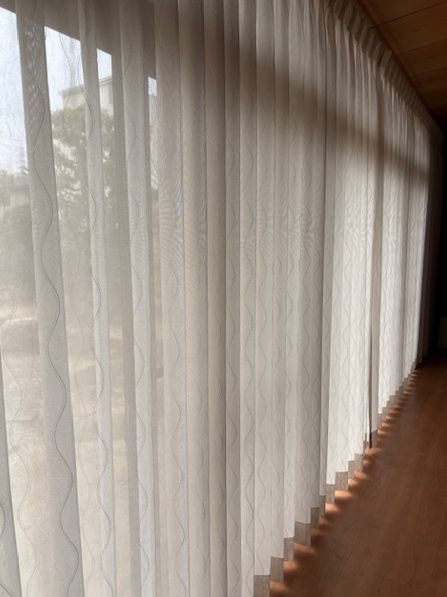 フィッテイングしてもらい、お部屋の中の印象と外からの透け具合を確認してもらいました。