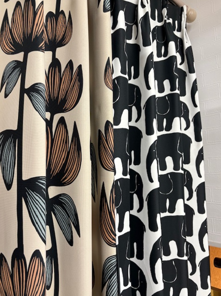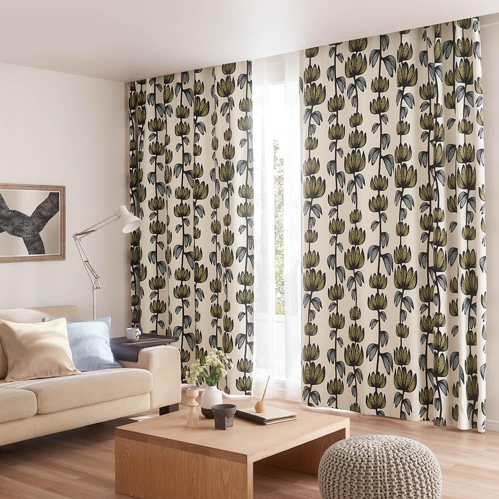 北欧らしい大胆でグラフィカルな花柄の遮光プリント。