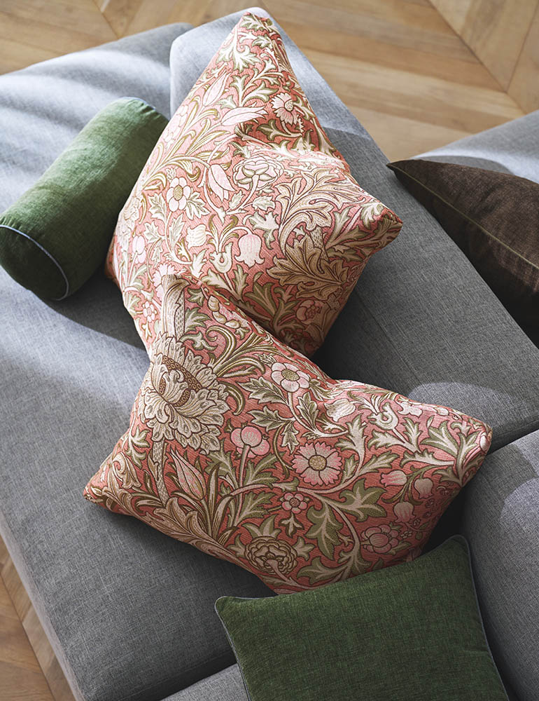 ウィリアムモリスらしい美意識が随所に感じられ、伸びやかなリピートと巧みに構成されたパターンが、空間に広がりをもたらします。